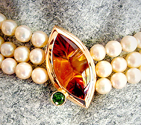 Citrin Navette, Tsavorith, Perlenkette